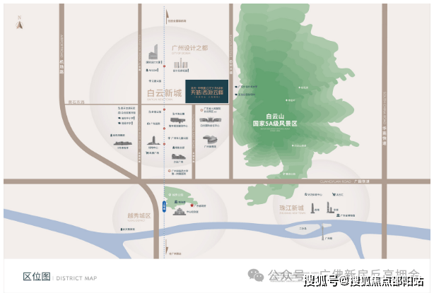 优越的地理位置:位于广州白云新城,是广州 “十四五” 规划中定位的标志性高端 cbd 区域,周边总部经济巨头云集,发展潜力巨大。紧邻白云山,可一线揽山,自然景观资源得天独厚,能为业主提供高品质的居住环境和休闲空间.
