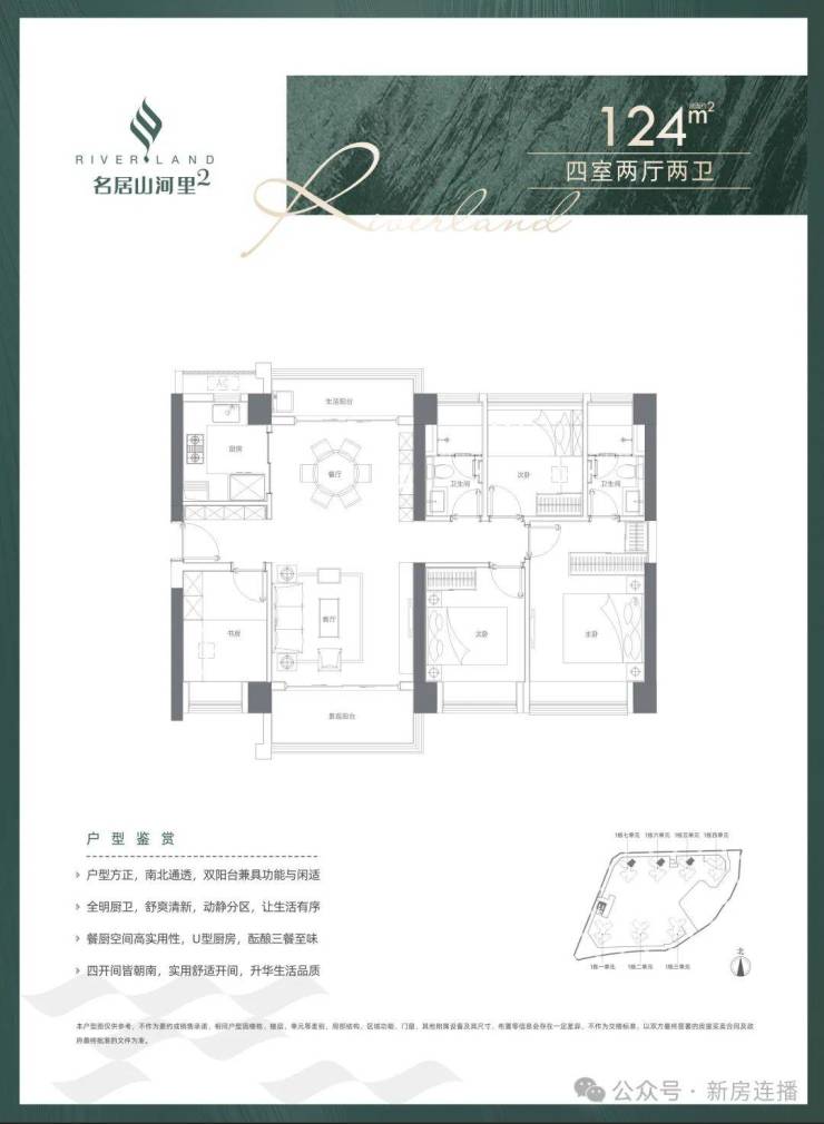 124平4房2厅2卫:南北通透,不含赠送使用率在74%