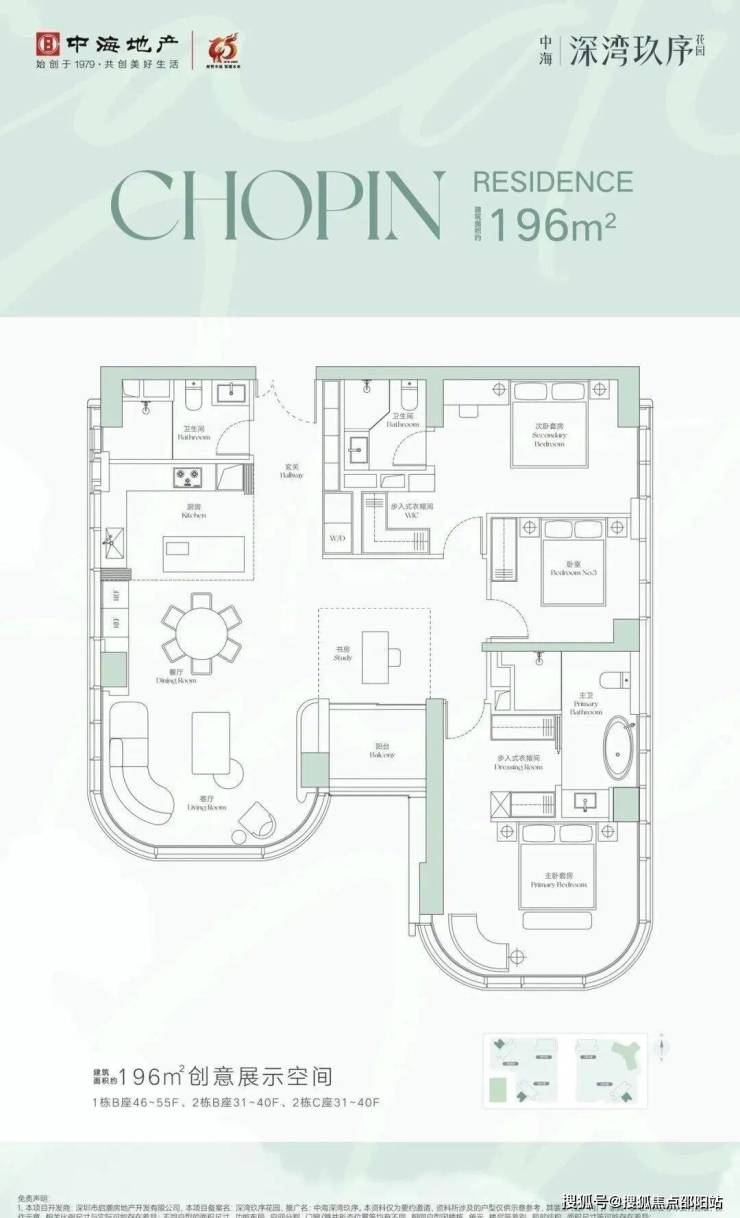 面积段:主力户型为196㎡、252㎡、328㎡大平层,少量400-600㎡顶层复式。