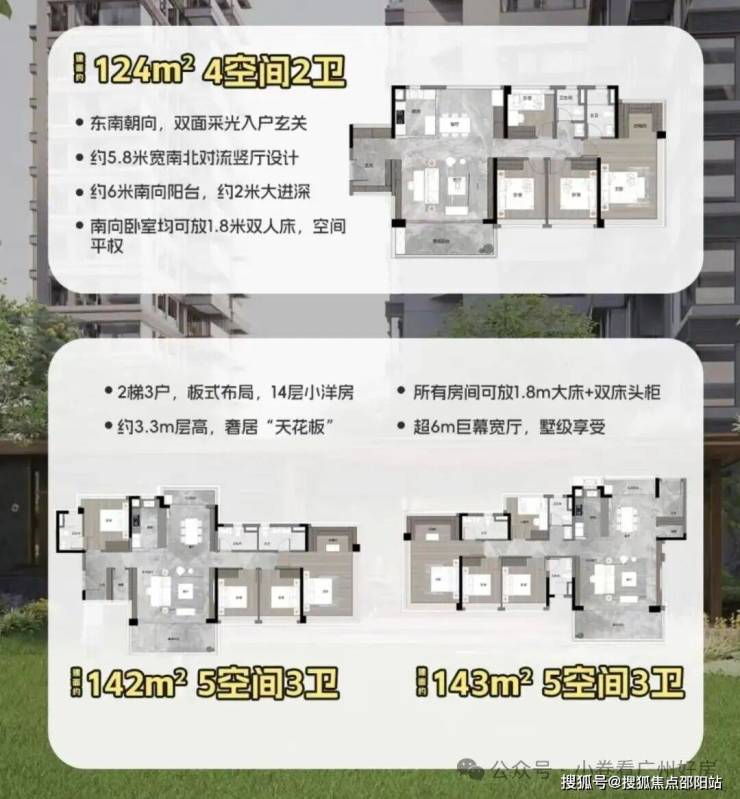 2.改善家庭(400-800万):124-143㎡四房契合低密+名校规划+三代同堂需求。