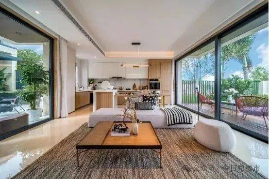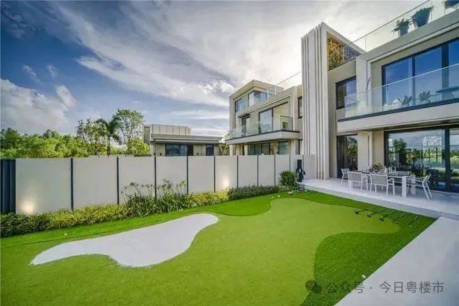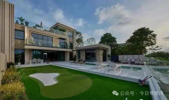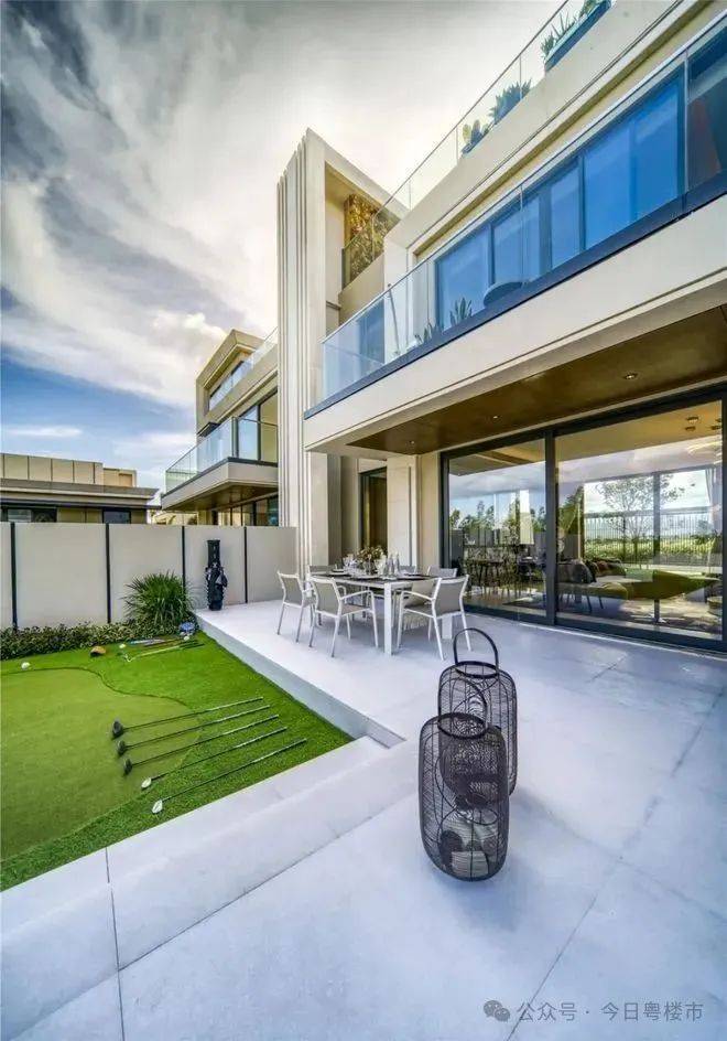 另外,户型设计则参考了亚曼酒店设计风格布局,外墙采用米白、浅咖双色结合,搭配深灰石材,呈现出轻松愉悦的感觉。部分户型还配有私家泳池甚至高尔夫练习场等,让业主真正放下疲惫,享受静谧。(建面约260㎡合院实景图)