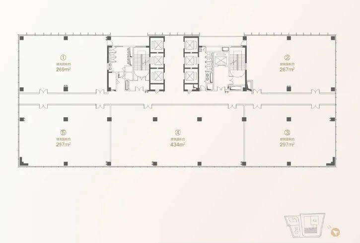 研发办公 创享海洋经济梦想研发办公A座 约2.7万㎡,22层,标准层约1565㎡,每层5户,户型面积区间约267-434㎡,方正实用,可灵活组合,层高4m,荷载300kg/㎡。