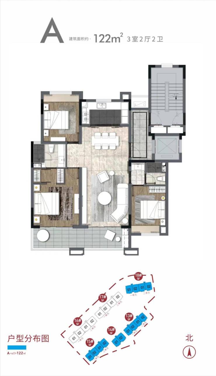 3室2厅2卫(建面约)122㎡