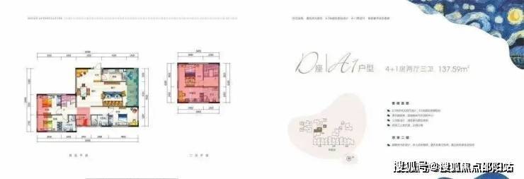 24k金艺术级入户大堂,私家电梯入户,超低梯户比,约40平入户花园。板式住宅,南北通透,5.8米挑高中空复式,10.2米极致双厅,170%超高使用率,奢侈户型布局。