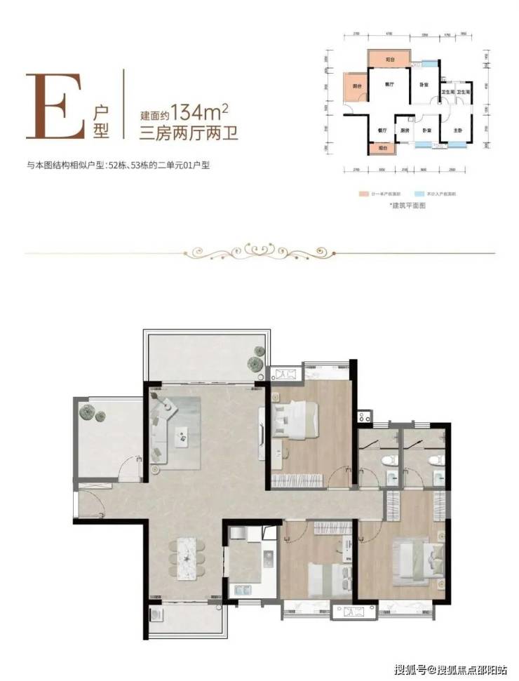 2单元01户型134㎡ 三房两厅两卫