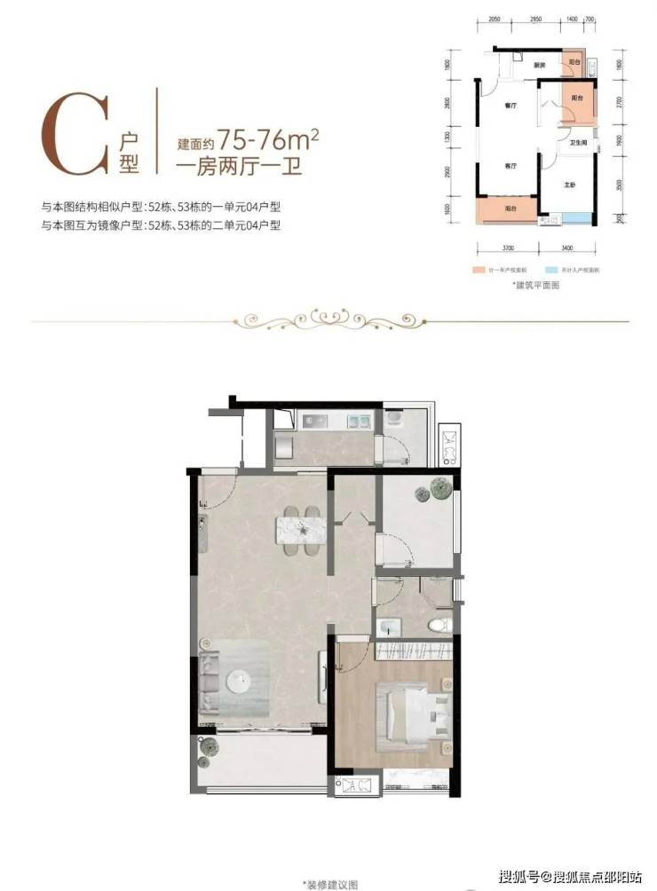 04户型 75㎡ 一房两厅一卫