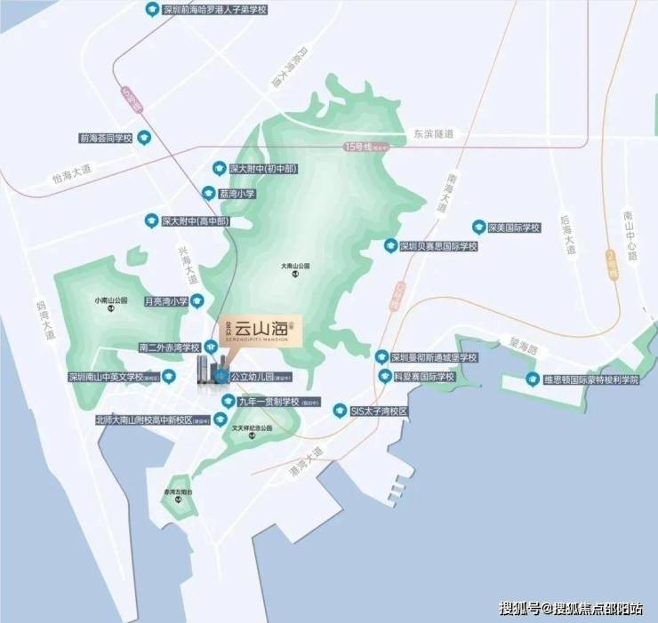 🔘周边教育信息介绍:社区自带双18班幼儿园、直线距离约280米公办九年一贯制南二外赤湾学校、九年一贯制学校(规划中)、深大附中高中部、北师大南山附校高中新校区(即市第三十高级中学,建设中)