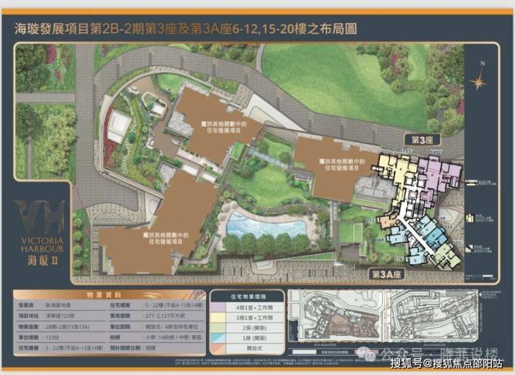 由3及3A座组成,共设123个单位,实用面积由277至2,127方呎,间隔介乎开放式至四房不等