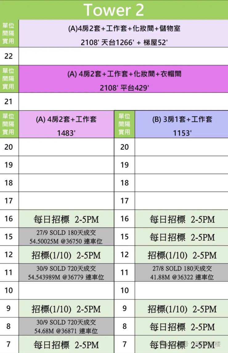 当中最大面积单位为3座22楼A室特色户,实用面积2,127方呎,四房间隔,并设面积1,034方呎天台。而最细单位则为第3A座F室,实用面积277方呎,开放式间隔。