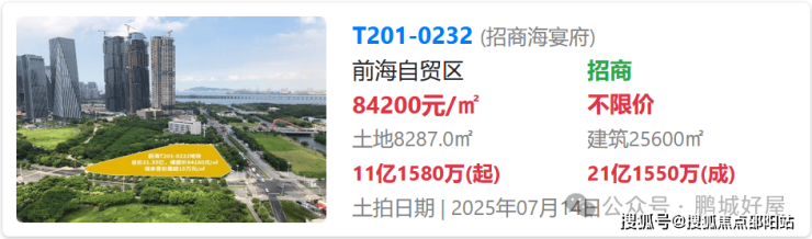 2025年7月14日,招商蛇口以8.42万元/㎡的惊人楼面价,拿下前海桂湾地块,刷新深圳地价纪录。