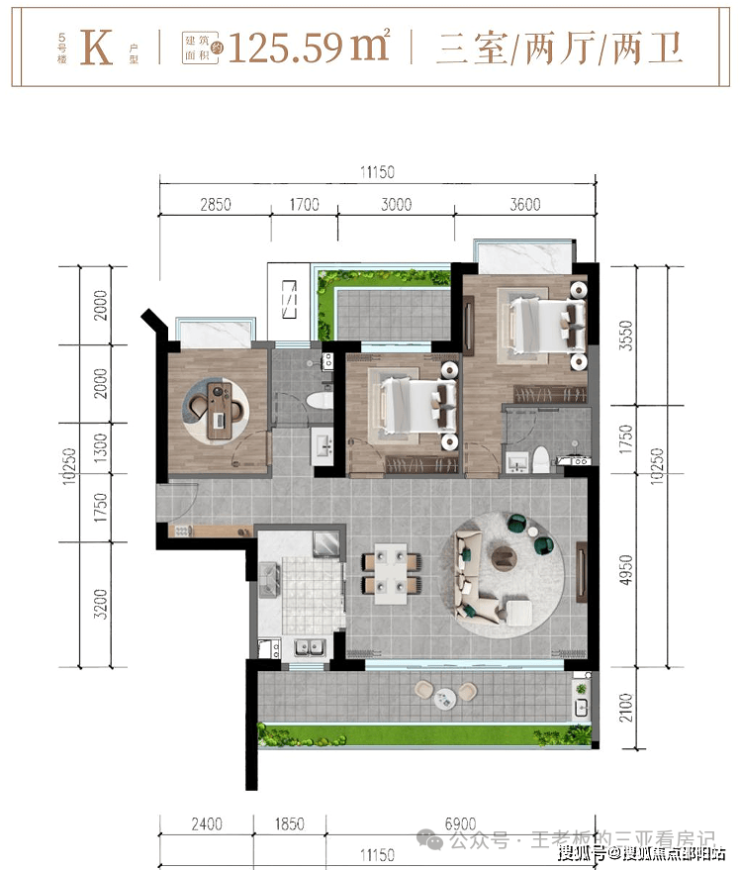 ✨5#楼K户型约125㎡三房两厅两卫