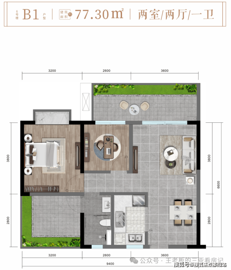 ✨ 6#楼B1户型约77㎡舒适两房两厅一卫