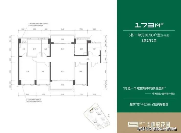 173㎡-5房2厅2卫,折后总价1132-1203万/套,折后单价6.55-6.96万/㎡。