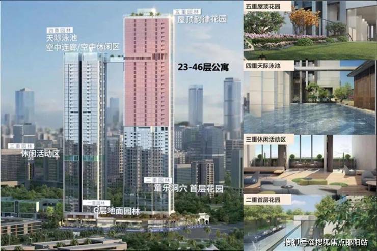 社区品质方面,项目以约166米超高层建筑伫立天际,构筑多达五重立体园林,打造了天际泳池、空中休闲区、慢步道、儿童游乐区等内部配套,将科技与诗意栖居融为一体,呈现独具特色的“云上生活”体验-1-3。