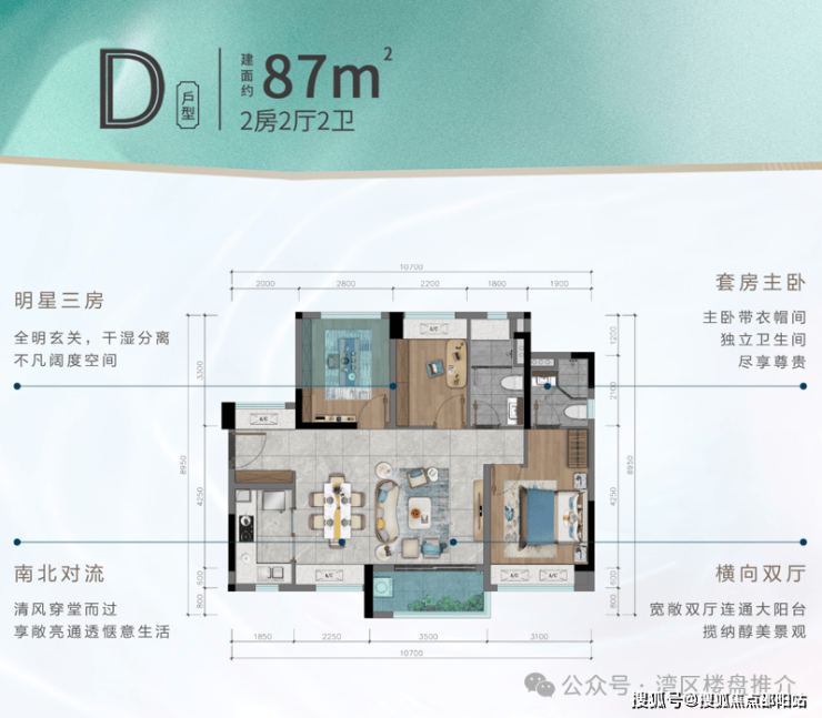 建面约87㎡2+1拓展空间,稀缺大横厅,明星户型