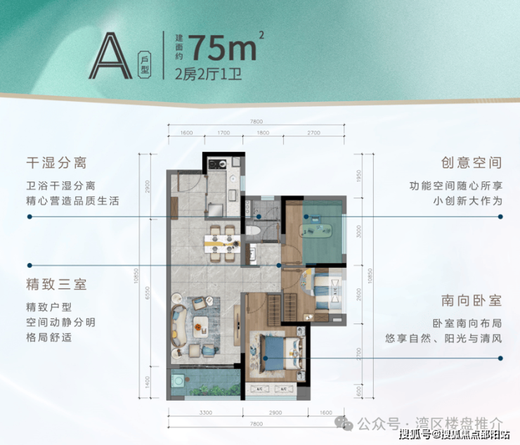 建面约75㎡2+1拓展空间,低总价轻松上车