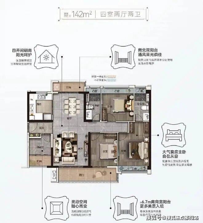奢享四房:142㎡四房两厅两卫