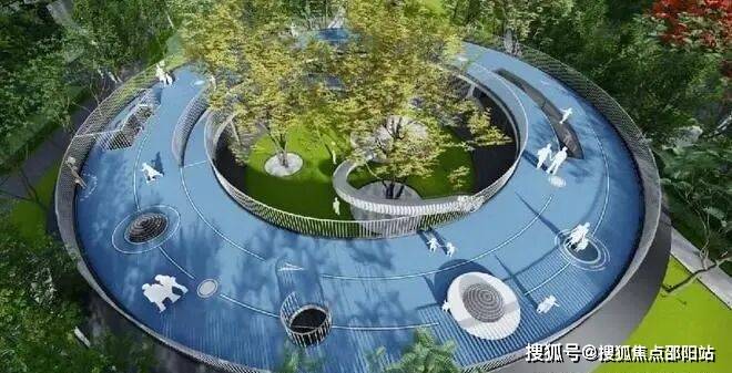 多元拓展公园:是社区景观的延伸,包含阳光草坪、疏林草地、河岸湿地等多种生态元素,同时提供约2000㎡的多元化运动场地,可同时满足老年康体,成年健身、儿童游乐三大活动需