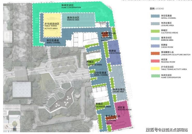 中通永安大厦架空层花园设置了棋牌区、休闲交流区、阅读区等功能区,满足老年群体休闲需求,不远处的健身区及空地也可供老年人练太极、舒展筋骨。