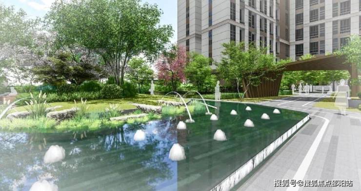 此外,喷泉边还设置了景观环形岛屿,生态旱溪,镜面水景与水生结合,让业主零距离体验自然趣味。