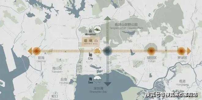 中心区域:深圳山海城中轴,左手香蜜湖、右手华侨城,六大总部基地环伺