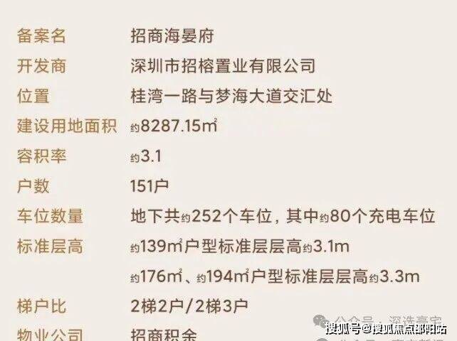 【招商海晏府】位于深圳市前海桂湾片区、梦海大道与桂湾一路交汇处、距离地铁5/9号线前湾站约700米;3月份中开实体样板房,预计首推2栋和3栋139/176/194平户型共约108套;主力面积139/176/194平户型。