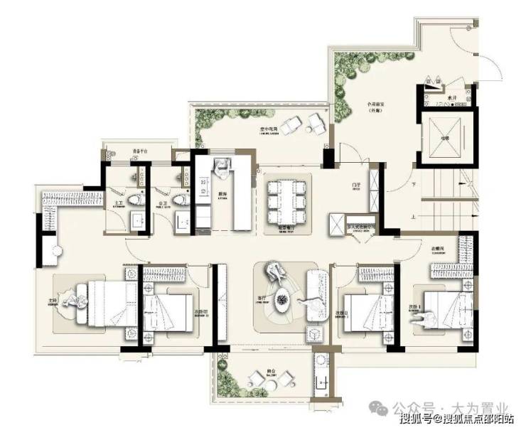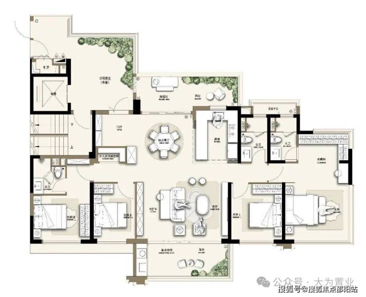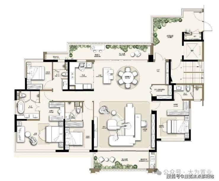 ✨ 179㎡闊綽四房:三主臥套房奢配,南北雙庭院環繞,居住尺度感拉滿;規劃閱讀區、空中花園、步入式收納空間,空間佈局科學,品質生活升級。