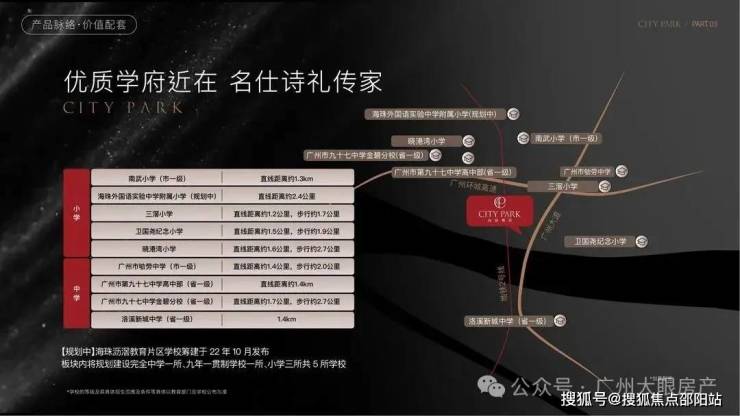 不过项目周边直线距离约1.3km是南武小学(市一级),直线距离约 1.5km是广州市劬劳中学(市一级) ,直线距离约1.4km是广州市第九十七中学高中部(省一级) ,直线距离约 1.4km 是洛溪新城中学 (省一级)