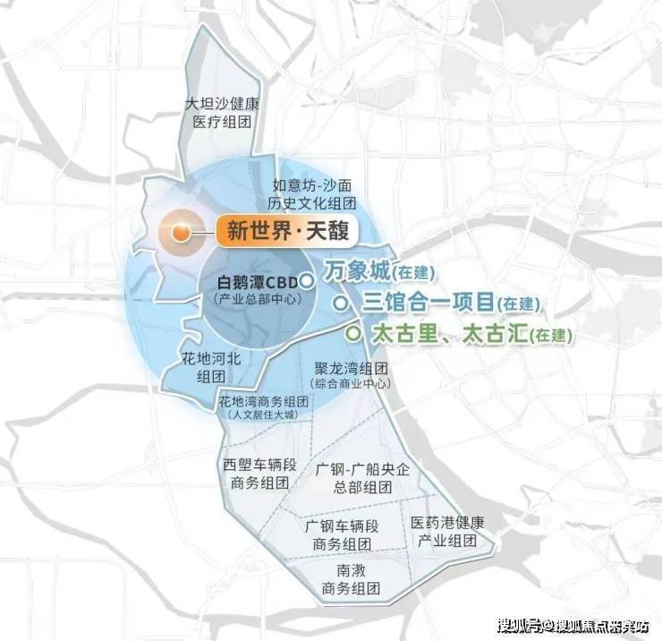 新世界·天馥位于白鹅潭中央生活区,这一区域不仅是广州西翼CBD的核心,也是未来城市发展的重点方向之一。根据《荔湾“十四五”规划》与《白鹅潭地区发展规划(2020-2035年)》,白鹅潭作为广州的重要发展区域,正迎来前所未有的发展机遇。通过三年约3000亿固定资产投资和超百个重点项目的支持,白鹅潭正在重塑城市经济版图,并成为世界级中央商务区的新标杆。