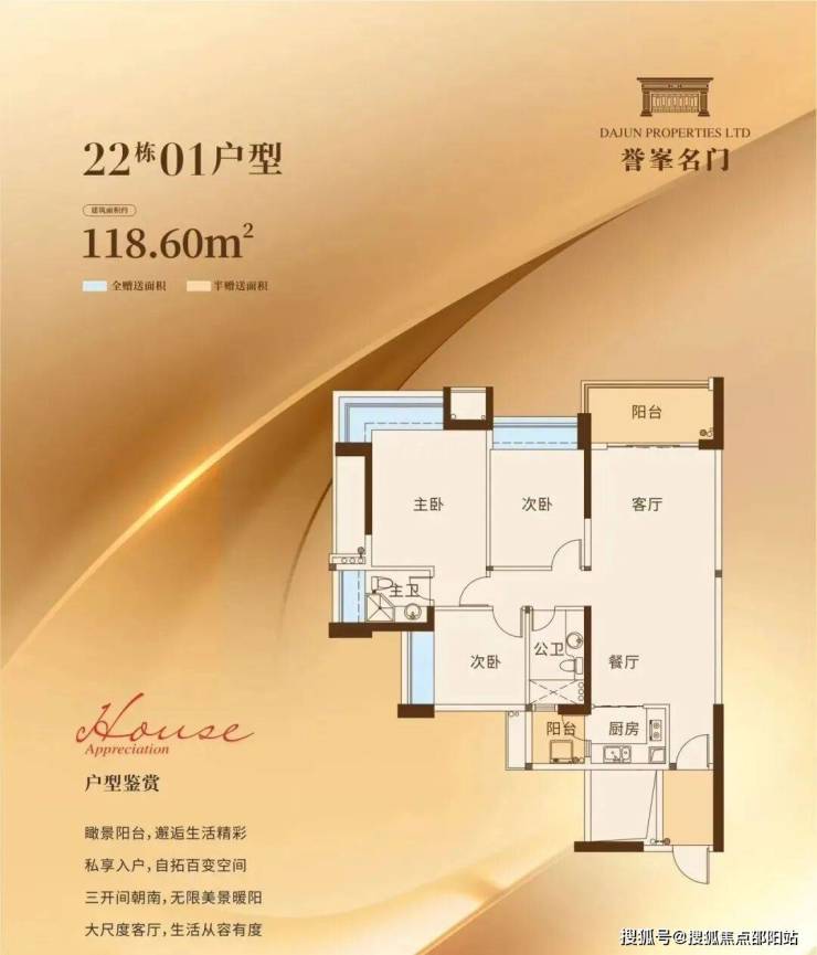 户户朝南全明采光,畅享大尺度入户花园,自由定制归家仪式感,户型通透舒适度高,超高使用率极尽空间美学,动静功能分区明朗,让家人的不同爱好都能找到专属的小天地。