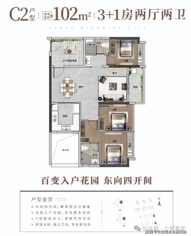 高性价比的全龄段人居N+1户型,户型涵盖约70-140㎡三-六房。