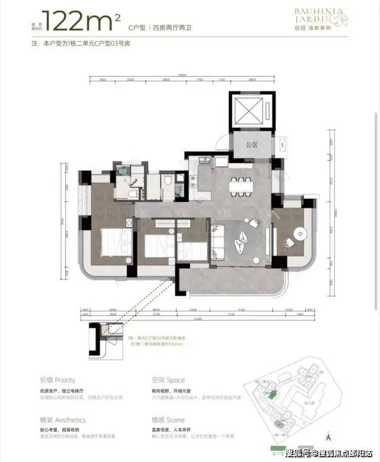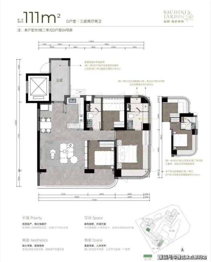 户型:新规设计、高使用率,规划主力为3-4房产品。