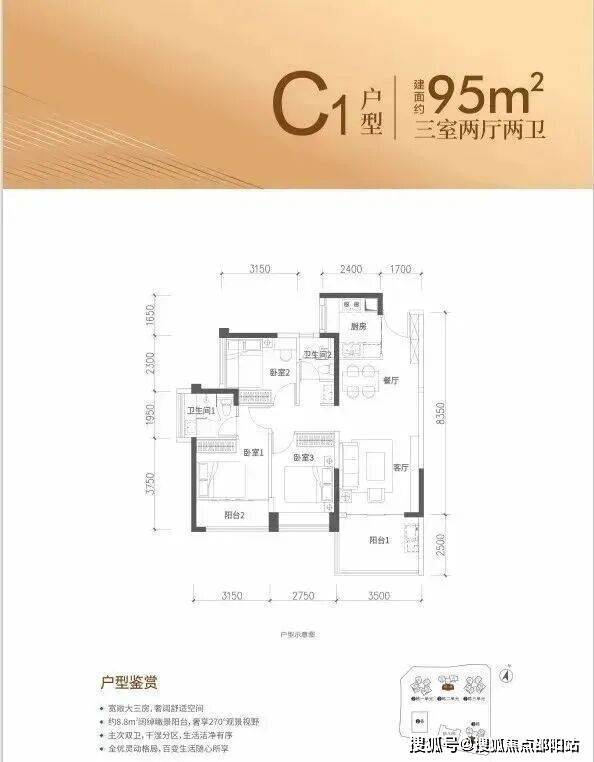 格局:经典竖厅设计,客厅3.5米开间,8.35米进深。