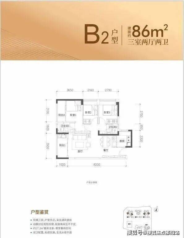 86㎡户型:3房2厅2卫