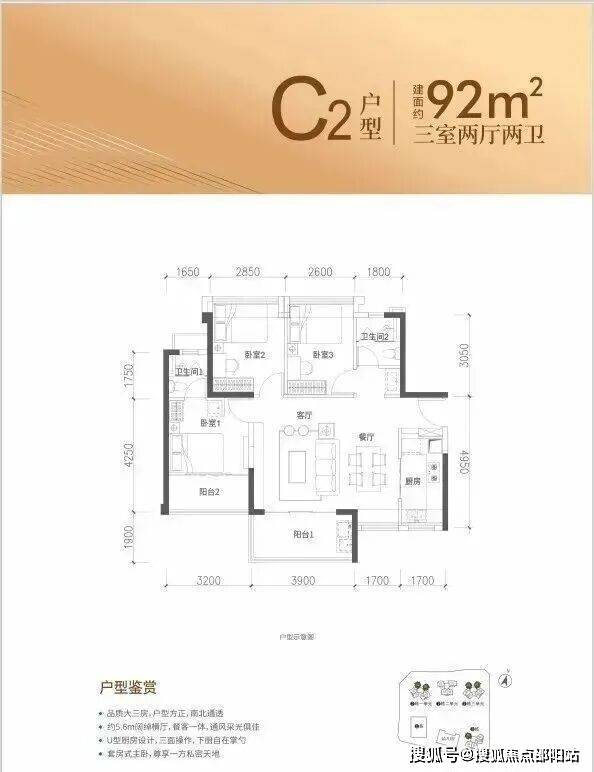 92㎡户型:3房2厅2卫