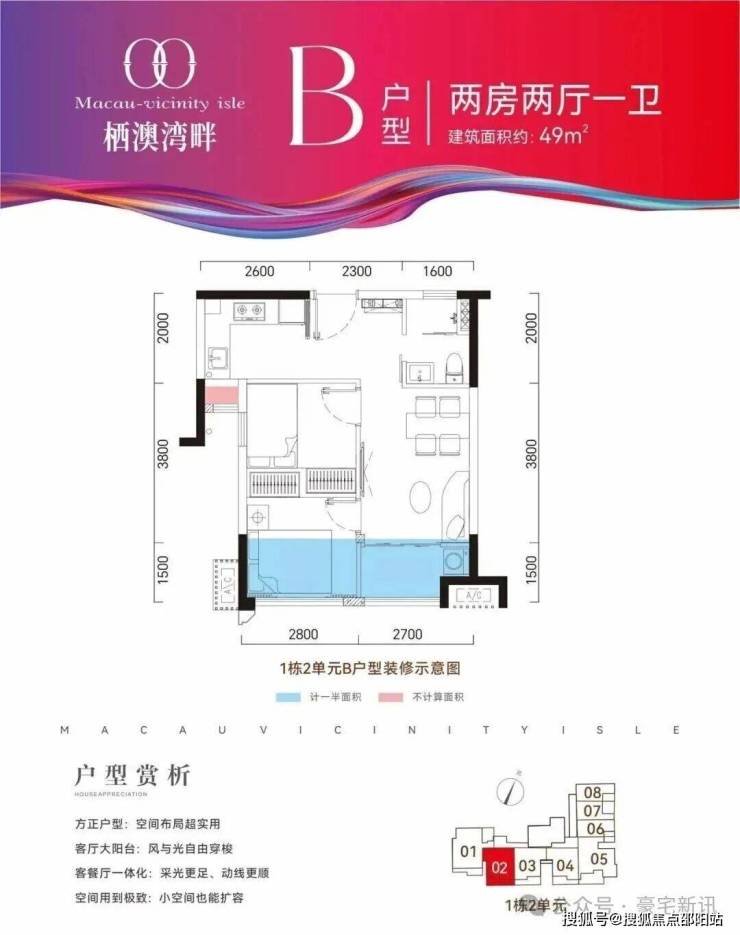 🔺B户型:建筑面积约49㎡,实用两居,空间布局超合理