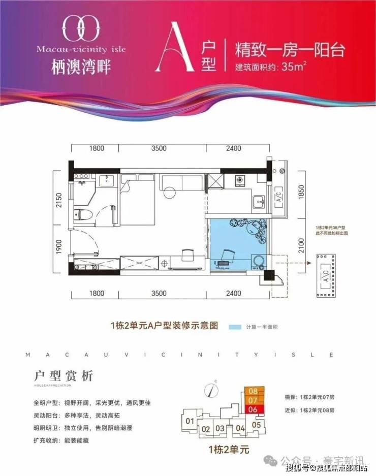 🔺A户型:建筑面积约35㎡,精致一房,百变阳台创意空间