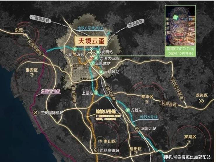 •通过光明城站,可便捷换乘莞惠深城际、赣深高铁、广深港高铁等数据来源:深圳光明公众号,8站直达南山,指地铁6号线光明大街站,3站至地铁13号线上屋站,再经5站至地铁13号线留仙洞站(南山区),2025年12月28日,地铁13号线一期(深圳湾口岸至上屋站)已通车,二期在建中。二期开通后,从光明到南山换乘更加便捷。最终以政府公布交通规划为准。
