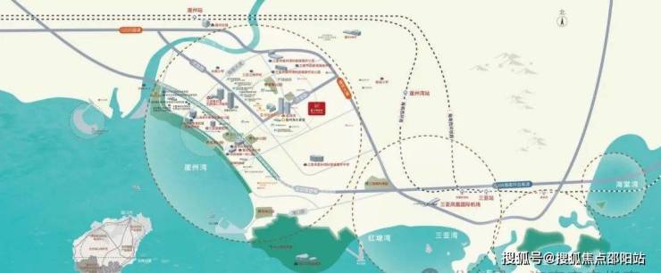 崖州高铁站:直线距离约6km