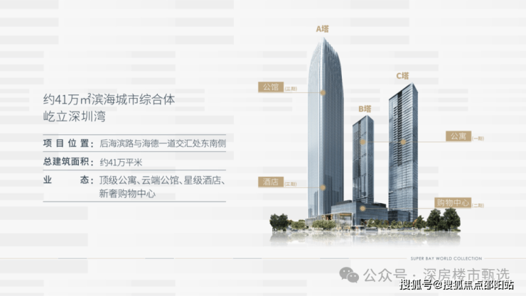 恒裕深圳湾是深圳市南山区后海中心区的顶级豪宅项目,由深圳市恒裕实业(集团)有限公司开发,定位为集超甲级写字楼、高端公寓、都会商业于一体的滨海城市综合体。项目总占地约2.5万㎡,总建面41万㎡,包含三栋超高层建筑(最高310米)及下沉式商业,是深圳湾片区稀缺的地标性物业。