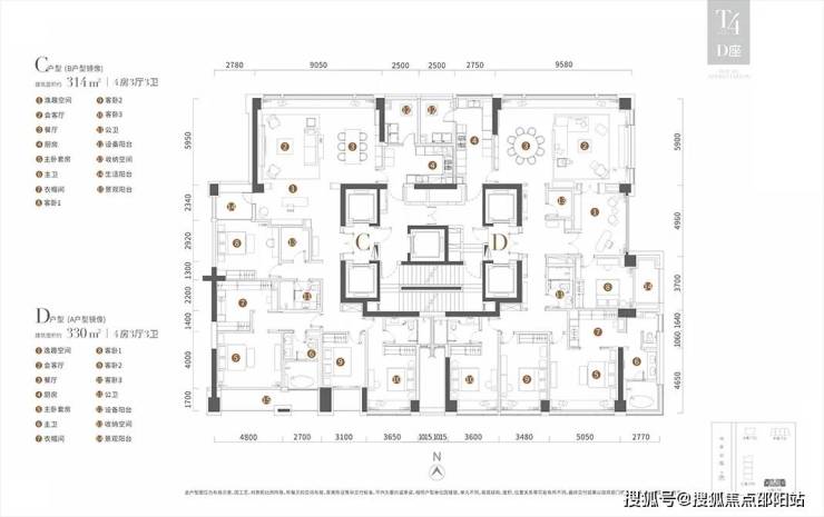 主力户型:建面约313㎡的4房2厅5卫、330㎡的4房2厅5卫