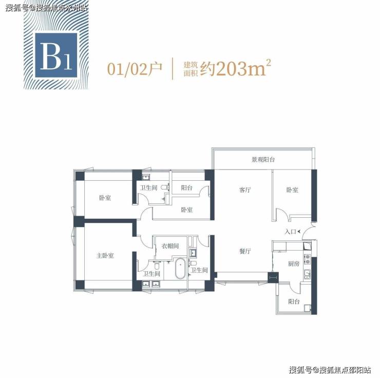 双主卧套房设置且270度景观面,同时主卧带独立衣帽间,竖厅南北通透带7.4米大阳台。
