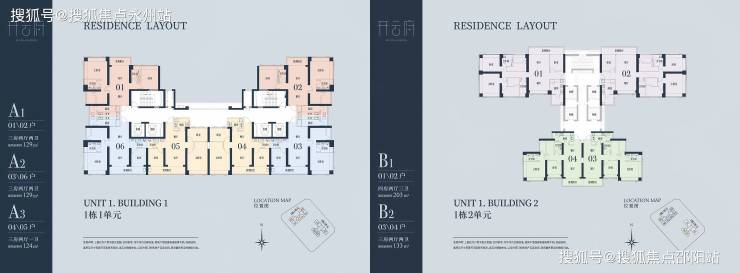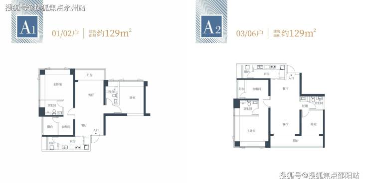 129㎡的3房2厅2卫:有2个户型,分别是西北,东南朝向,都是是双龙抱珠格局,其中A2(03/06)户型客厅超大观景阳台(近7米)舒适大三房设计主卧都享有270度采光面,整体空间尺度感大且采光面充足,视野非常宽阔。