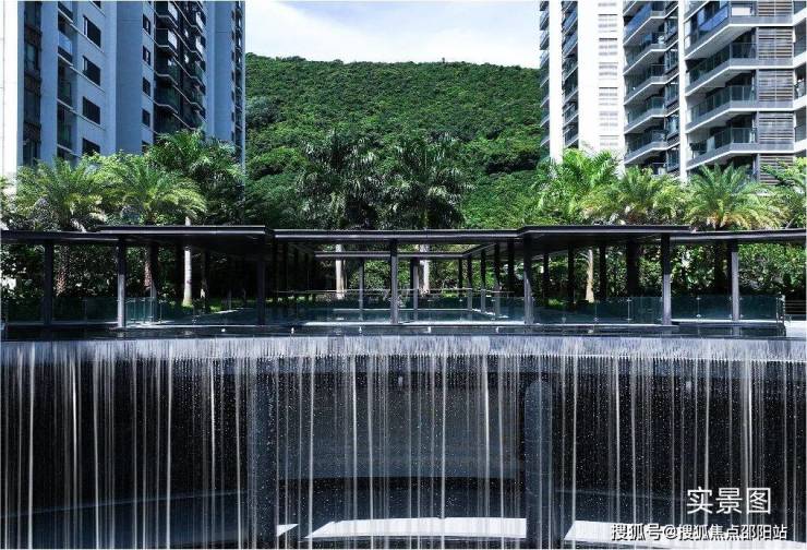中轴水幕帘,约7米高瀑布水幕,气势非凡。
