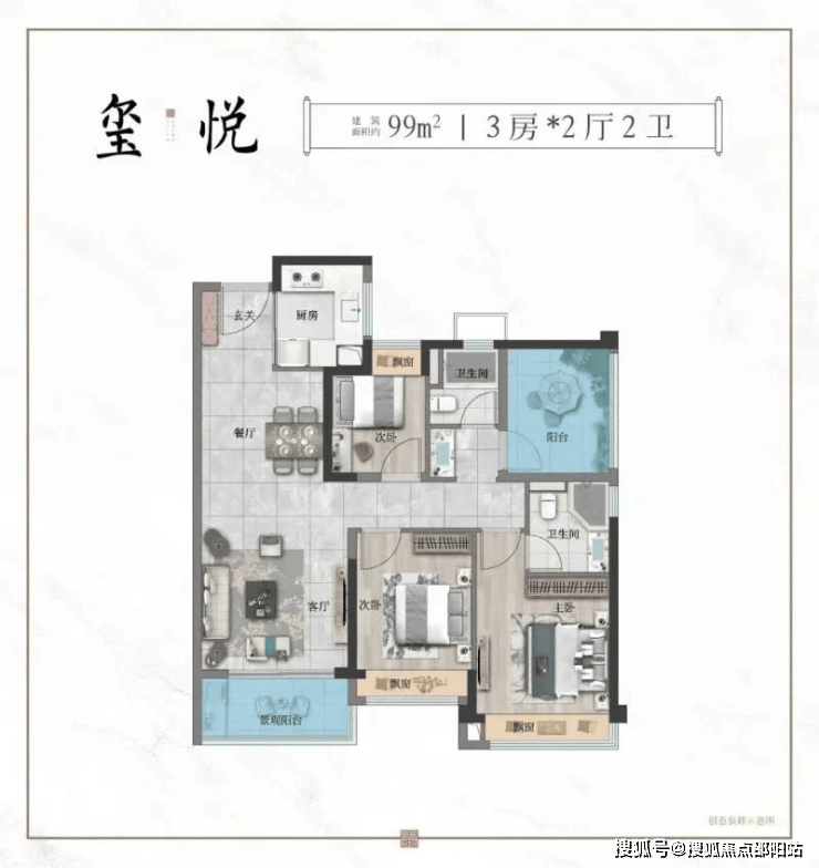 和玺产品线精准切中改善客群痛点:高层主打99-130㎡三至四房滨江华宅,叠墅则推出143㎡国风墅院(注:原文提及“243㎡”疑为笔误,实际主推为143㎡)。高层户型采用高得房率设计,99㎡做到三房两卫,130㎡实现四房双阳台+主卧套房,空间利用率极高;所有单位均带品牌精装交付,省去装修烦恼。而143㎡叠墅更是亮点——上下叠设计,部分单位带私家庭院或露台,实现“有天有地”的墅居梦想。户型布局强调动静分区、南北通透,大面宽阳台引景入室,兼顾实用性与仪式感。在三水新城同质化高层林立的市场中,和玺以差异化产品力脱颖而出。