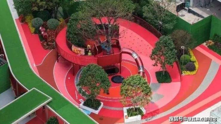 穿过大堂电梯厅,南洋风情园林以"绿洲浮岛"为理念,铺展成可触摸的生活画布。高密度的植被区,让香樟、朴树、精品桂花等10年以上树龄的植株交织成天然穹顶;25年树龄的全冠移植芒果树为儿童成长营地投下浓荫,孩子们在园林观察幼苗生长时,感受着自然的奥秘与生命的律动。