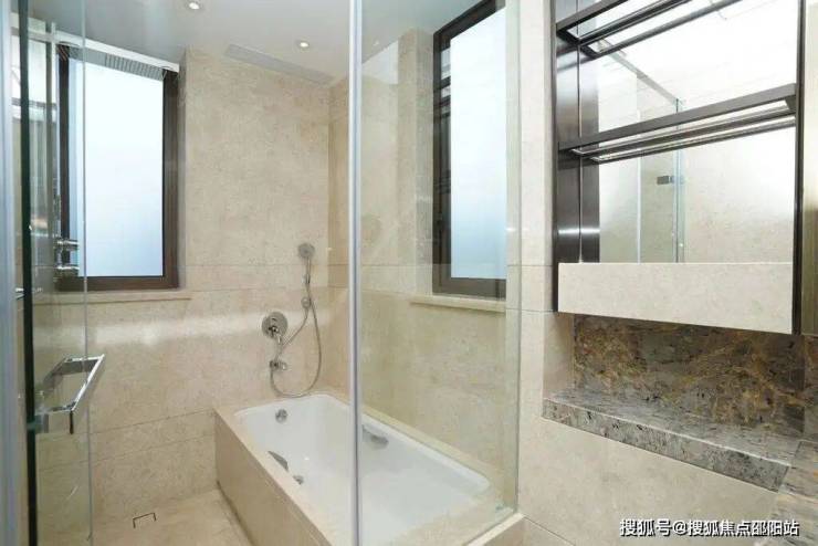 主人套厕以暖色云石作设计,并设有浴缸,有两个洗手盆方便住户。