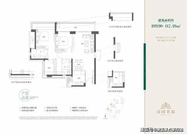 汉园茗院以改善型产品为主,户型面积包括109-112㎡三房两厅两卫、121㎡四房两厅两卫、157-159㎡五房两厅三卫和168-169㎡五房两厅三卫。