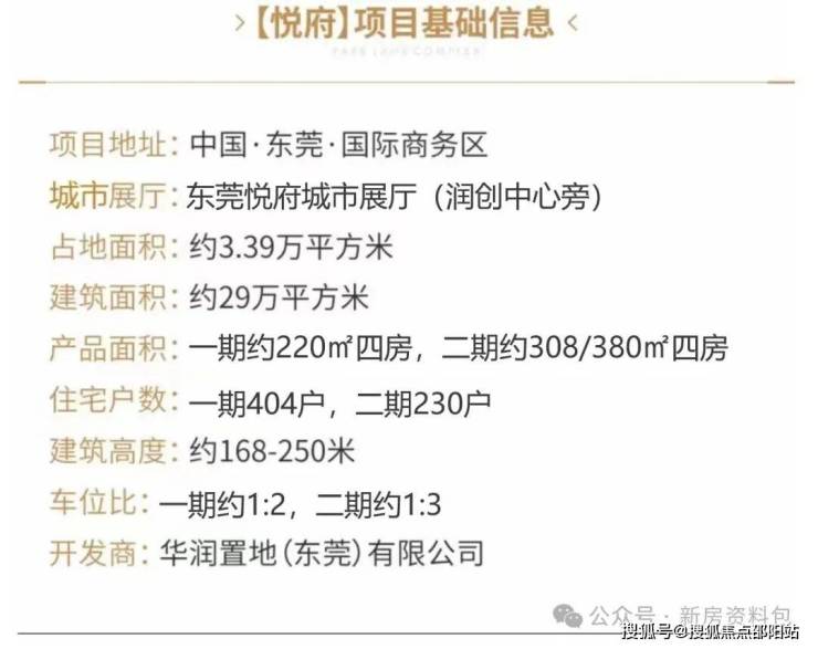项目核心价值:华润悦府(备案名:悦府)作为华润置地在东莞南城中心区核心地段打造的地铁上盖TOD学府品质住宅,以其建面约89-140㎡的改善型住宅产品线、无缝接驳地铁1号线蛤地站的交通优势、东莞外国语学校(南城校区) 的优质学区资源以及华润品牌的品质保障,在2026年市场定位于南城兼具便捷交通、优质教育、品质生活与成长潜力的标杆改善型资产。项目位于东莞市南城街道鸿福路与东莞大道交汇处,总占地面积约3.0万㎡,总建筑面积约12万㎡,容积率约3.5,绿化率约40%,规划建设6栋高层住宅,总户数约600户,车位配比约1:1.2,物业公司为华润物业,物业费约4.5元/㎡/月,项目预计2027年底精装交付,产权年限70年。