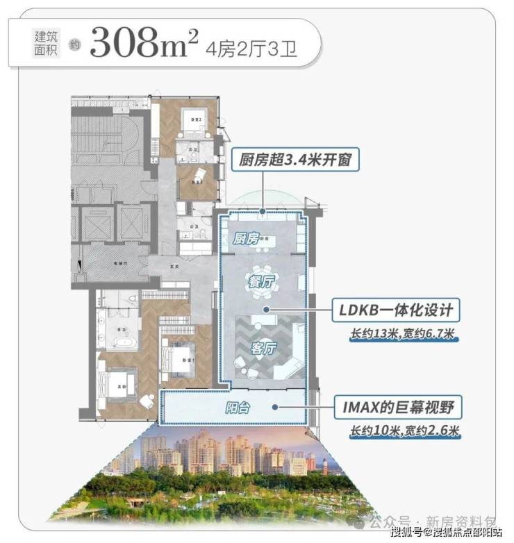 约3.5米殿堂级层高,约90平米客餐厅,以非凡气度礼遇塔尖传奇;约19米转角阳台,IMAX级生活演绎;超60平米酒店式主卧,私享高贵与优雅。